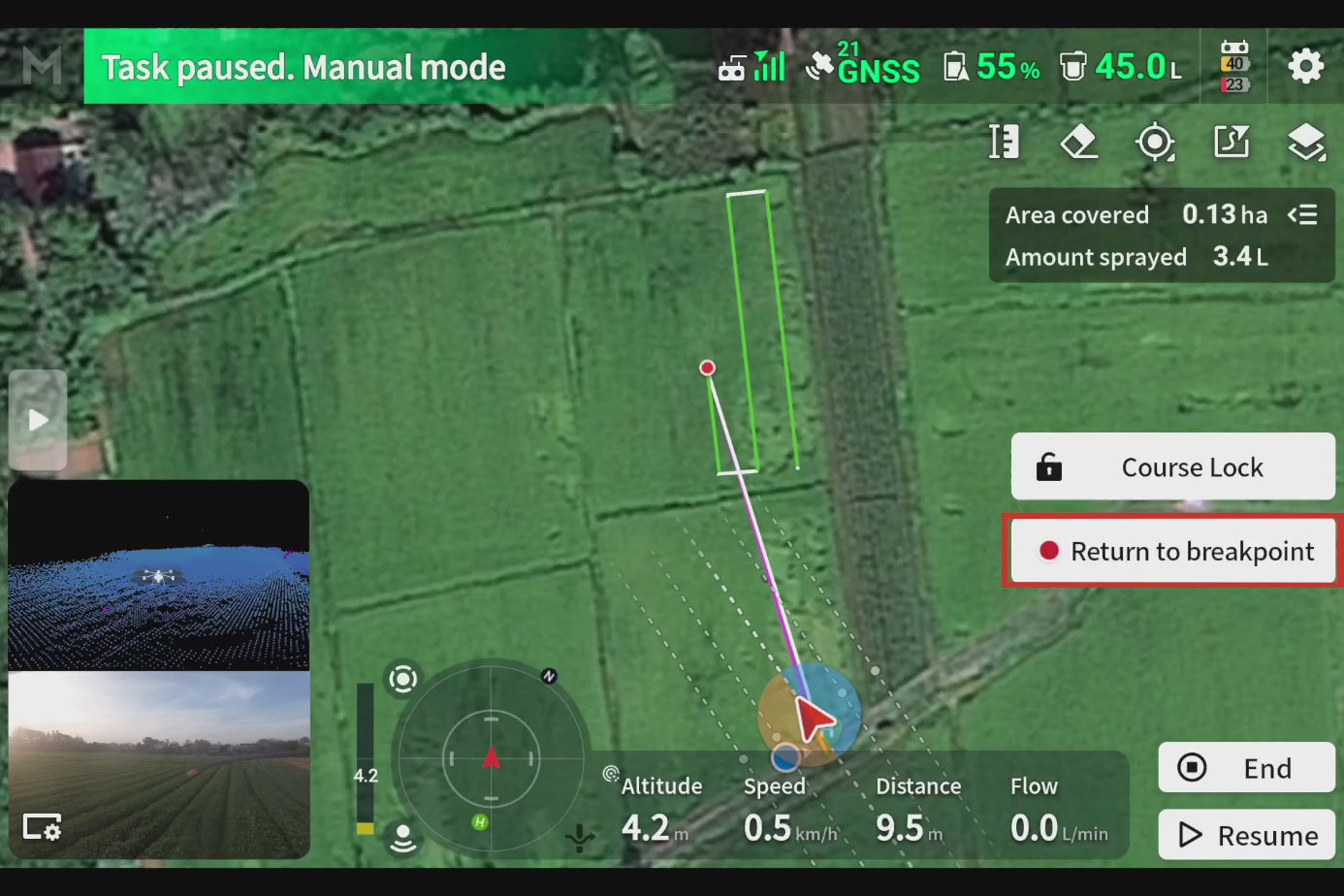 ²⁷ Vergeleken met de T50 landbouwdrones en de bijbehorende apparatuur bedroeg de operationele snelheid 13,8 m/s tijdens de test. Algemene conclusies over de efficiëntie kunnen variëren onder verschillende testomstandigheden.